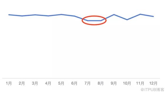 趋势分析有两大作用:趋势预测和数据监测。比如我现在正在做的项目业务数据监控,就是基于支付成功率在过去一段时间内的数据表现来预判当前支付成功率是否异常。如下图中的7月和8月明显低于其他月份,可判定这两个月数据发生了异常,需要去寻找原因。