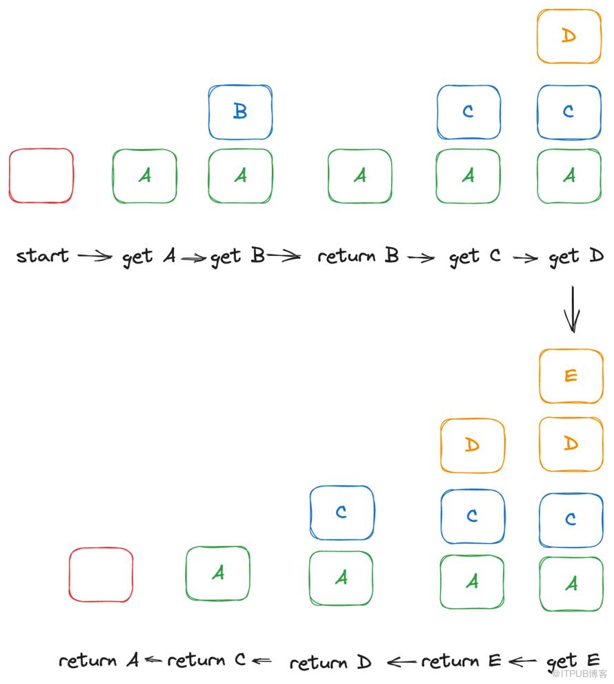 如果doGetBean时,发现栈不为空,那么就表示当前栈顶的bean依赖当前要获取的bean,譬如上图获取bean B时,栈不为空,栈顶元素为bean A,说明A依赖了B,A的初始化必须要等到B完成后才能返回。