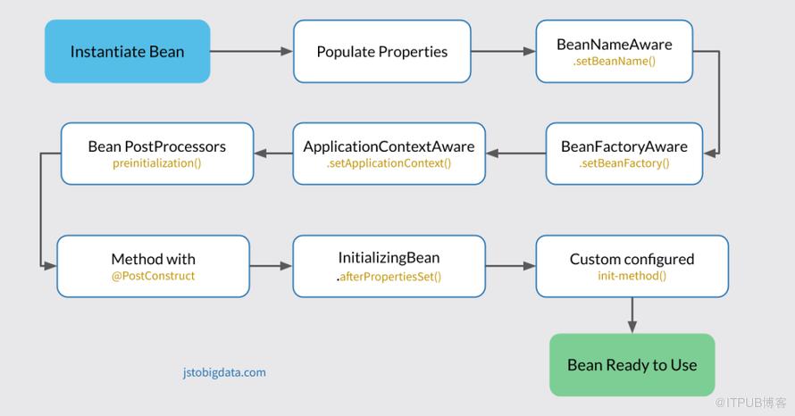 Init-method: 包括手动指定的init-method和实现InitializingBean时写的afterPropertiesSet,在构造、属性赋值后由BeanFactory调用;