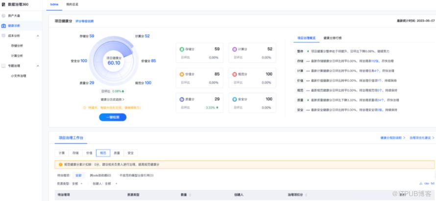 元数据信息采集:可使用云端数据平台自带功能如下图,如使用开源组件同学可使用三方工具Apache Ambari、Apache Atlas、等对Hive元数据信息收集,并后续存储在数据表中存放,并可以根据数据表进行重要等级打标,给予表检索及使用热度,这里建议使用DataHub开源数据中心,DataHub提供了可扩展的元数据管理平台,可以满足数据发现,数据可观察与治理。这也极大的解决了数据复杂性的问题,地址:datahubproject.io。