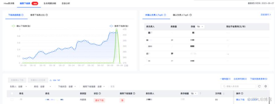 根据数据血缘及任务依赖(这里建议在数仓侧开发血缘数据表,可不到字段血缘,如有条件可将范围扩大到可视化侧)对线上长期无用表、下游无血缘且空跑数据表、临时表进行扫描及下线,降低无用存储及计算损耗。