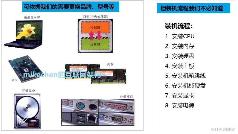 例如:我们要定制一台电脑,我们只需要确认配件品牌及型号,而不必知道组装电脑的这个过程。