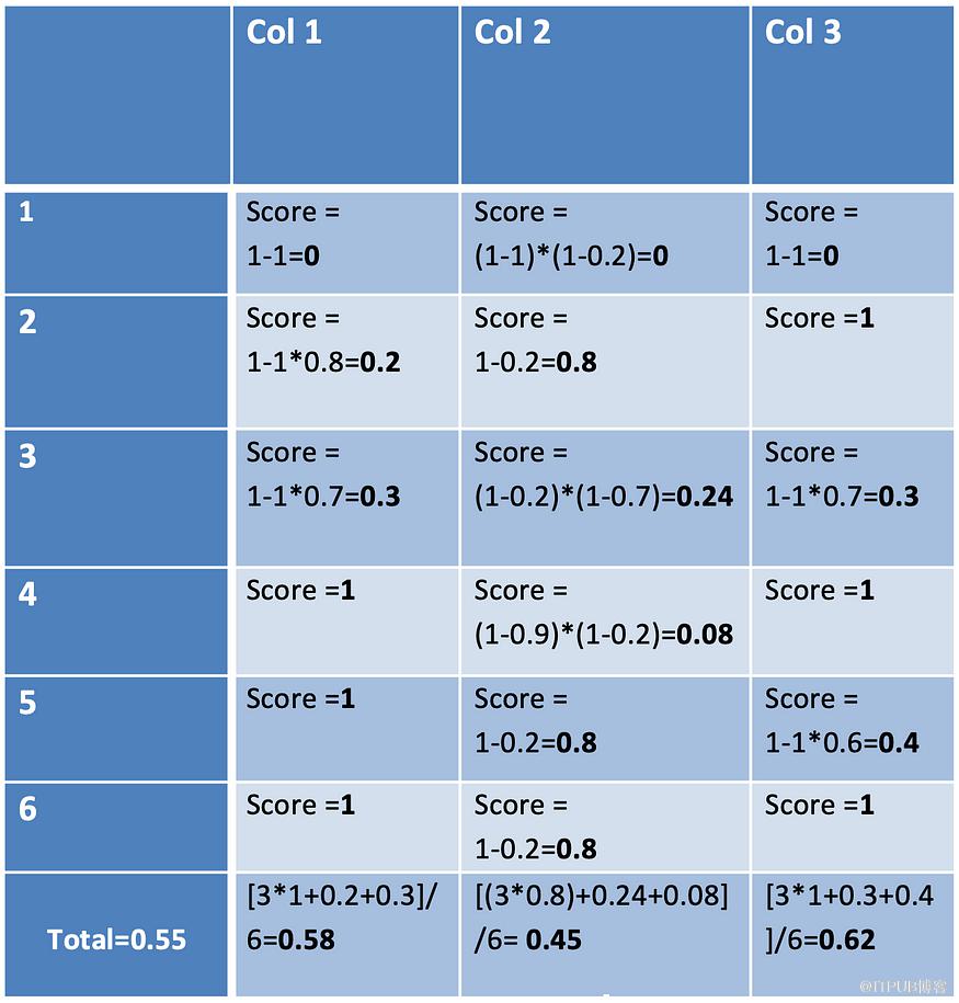 同样,可以通过对为该行的每个单元格计算的分数求平均来计算数据集的任何行的分数。