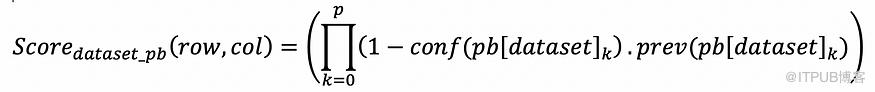 如果一个单元格有2个问题,一个置信度80%,另一个置信度60%,那么第一个问题不真实的概率是100%-80%=20%,第二个问题不真实的概率是100%-60%=40%,而根据概率定律,没有一个问题是真实的且单元没有数据质量问题的概率仅为20%乘以40%=8%。
