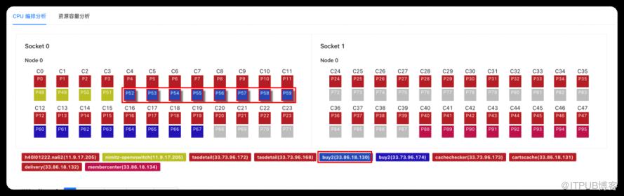 | 8C16G容器,独占使用跨Socket上的8个物理核(P20 - P28) | Socket可以简单对应到主板上的Cpu插槽,跨soeck后,会导致Cpu之间跨socket访问内存及cache,性能相比前一种场景要差,具体差异还和应用特性有关,大内存带宽的应用性能会相对更差 |