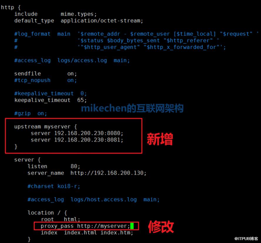 upstream myserver{ ip_hash; server 192.168.71.167:8080 weight=1; server 192.168.71.167:8081 weight=1;}以上
