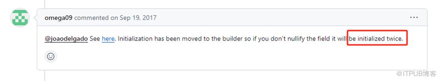 注意 omega09 这个老哥的发言的后半句:field it will be initialized twice.