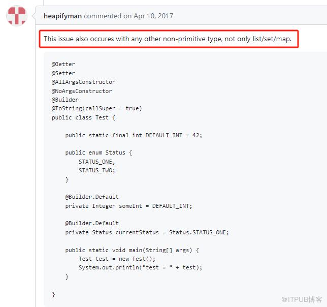 然后把“重复初始化”写到 @Builder.Default javadocs 中,大不了再给这几个字加个粗。