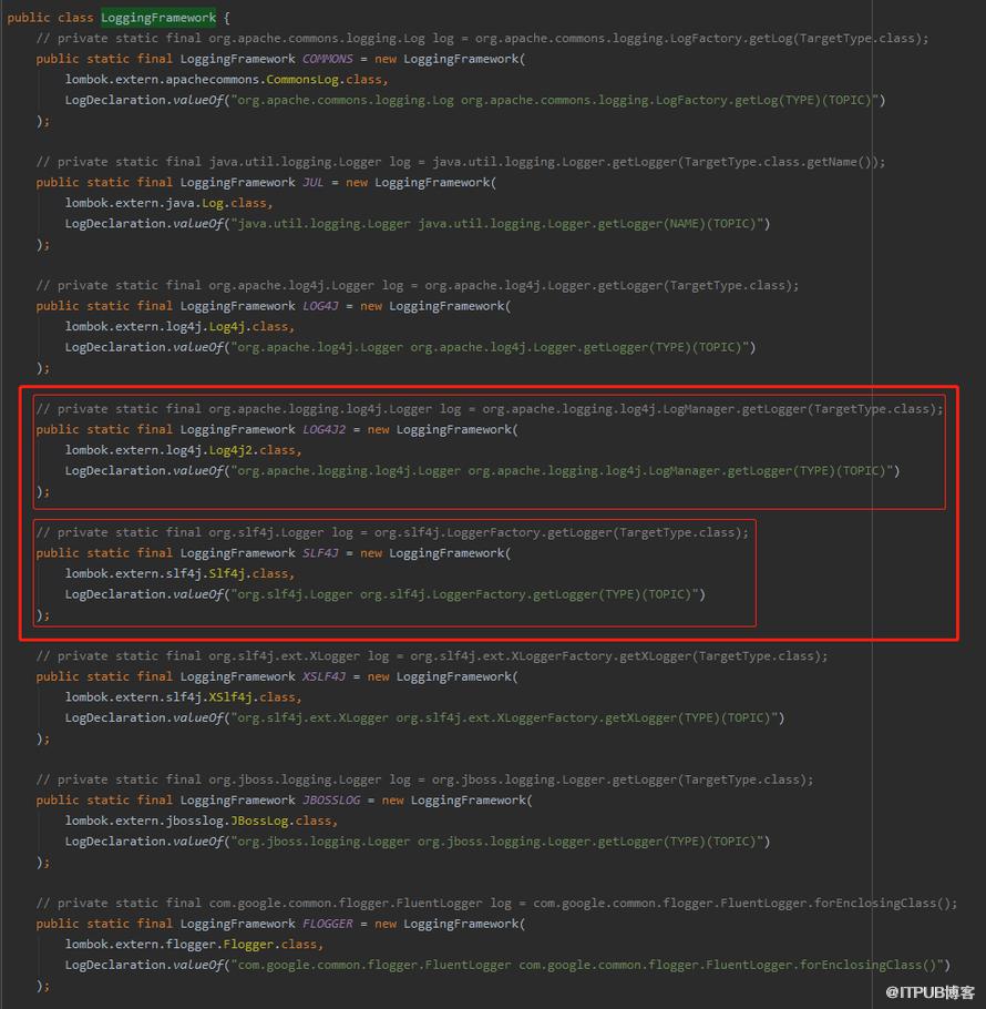 这个里面把每个注解需要生成的 log 都硬编码好了。正是因为这样,Lombok 才知道你用什么日志注解,应该给你生成什么样的 log。