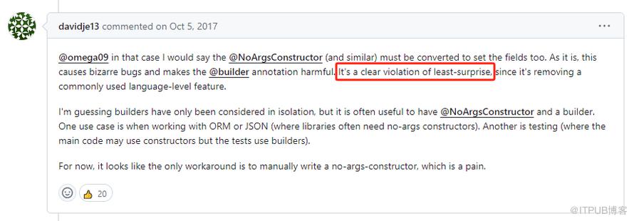 这个哥们的核心思路刚刚相反,就是呼吁大家不要把 @Builder 和 @NoArgsConstructor 混着用。