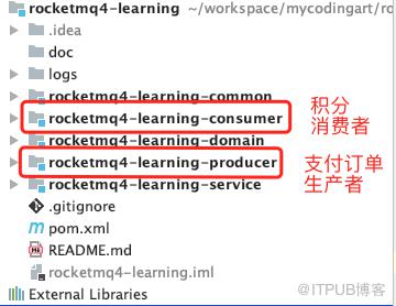 为了便于大家理解事务消息 ,笔者新建一个工程用于模拟支付订单创建、支付成功、赠送积分的流程。