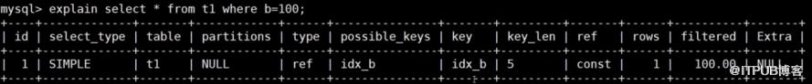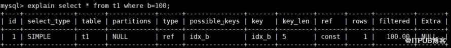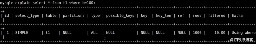 explain select * from t1 where b=100;