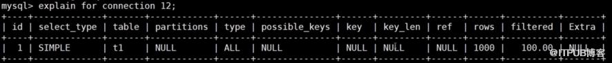 EXPLAIN FOR CONNECTION 12;