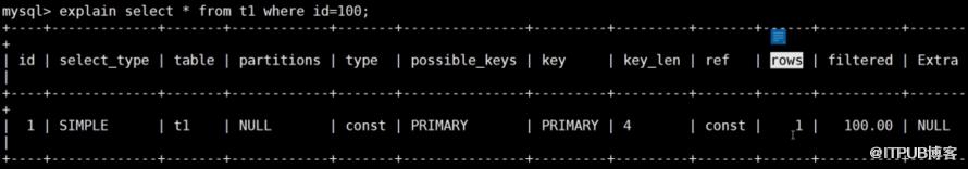 explain select * from t1 where id=100;