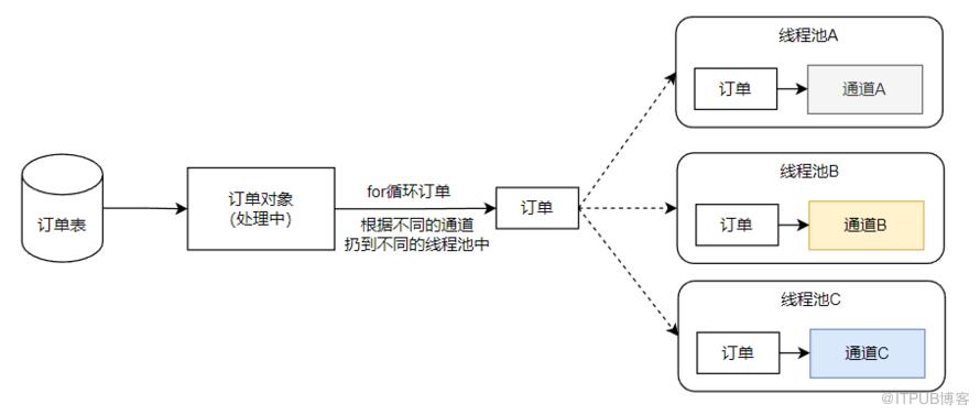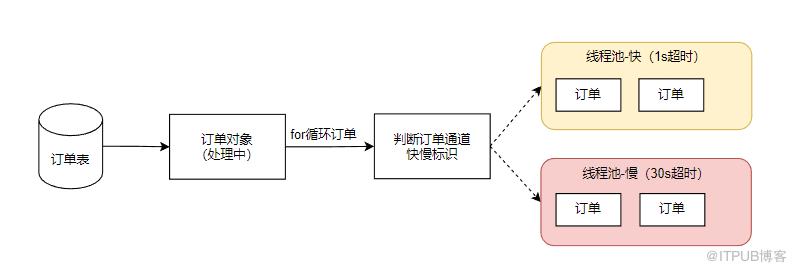图中的线程池,不管是快的还是慢的,本质上他们处理的请求都是一样的,即拿着订单去对应的通道查询订单结果。
