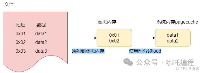 根据文件地址创建了一层缓存当作索引,放在虚拟内存中,使用时会根据的地址,直接找到磁盘中文件的位置,把数据分段load到系统内存(pagecache)中。