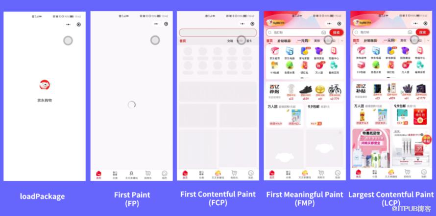 性能指标与衡量 理解,首先 MCube 会依据模板缓存状态判断是否需要网络获取最新模板,当获取到模板后进行模板加载,加载阶段会将产物转换为视图树的结构,转换完成后将通过表达式引擎解析表达式并取得正确的值,通过事件解析引擎解析用户自定义事件并完成事件的绑定,完成解析赋值以及事件绑定后进行视图的渲染,最终将目标页面展示到屏幕。使用性能指标来评估小程序的加载速度是非常必要的,首先回顾一下京购小程序页面加载的几个关键阶段: