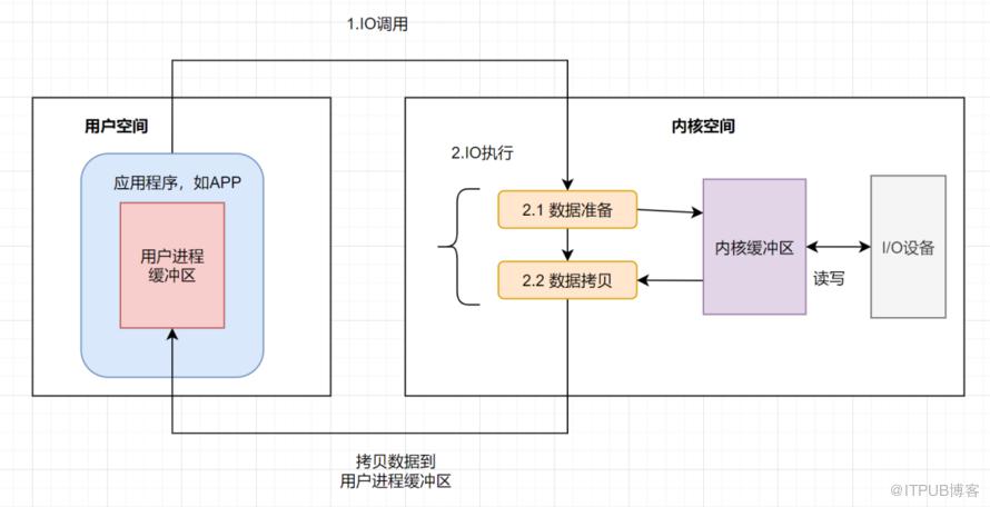 IO调用:应用程序进程向操作系统内核发起调用。 IO执行:操作系统内核完成IO操作。