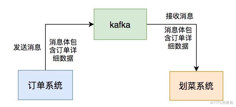消息给我们系统,系统读取消息后,做业务逻辑处理,持久化订单和菜品数据,然后展示到划菜客户端。