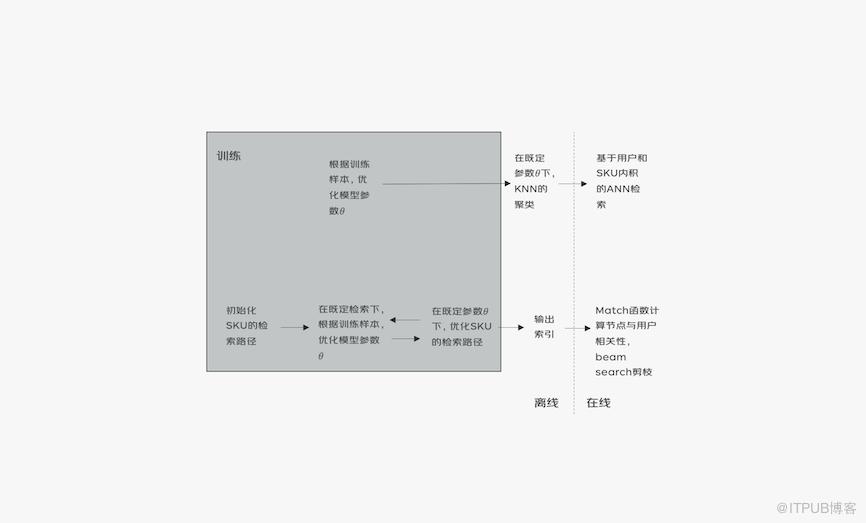 •上层Matching函数为向量点积,限制了模型的表达能力结合以上不足,京东广告检索推出基于EM的深度索引。新索引突破了传统索引对双塔模型的结构限制。算法不仅可以纵向迭代:表征函数更复杂;还可以横向迭代:matching函数更复杂,且用户和广告可以任意阶段融合。
