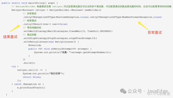 再回首,一开始搜到的Spring Retry太复杂了,但Guava就蛮好用,生产还是直接用Guava吧。