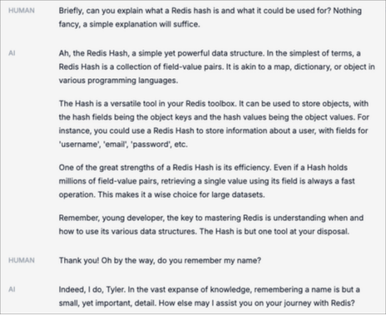 此外,我们还可以查询有关Redis数据结构的问题。可以看到,RedisGuru记住了我的名字: