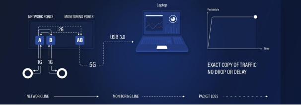 交换端口分析仪( SPAN)将流量导出到捕获主机这样的站点有一些局限性。由于双向流量的发送和接收方向都从单个输出端口发出,因此 SPAN 目标端口超量订阅的可能性很高。TAP 解决方案通过将流量输出到每个方向的单独目标端口来解决这一限制。要接收这两个 TAP 输出,目标端口需要两个网络端口。在笔记本电脑等便携式设备上,这可能是个问题,因为它们很少包含多个以太网接口。
