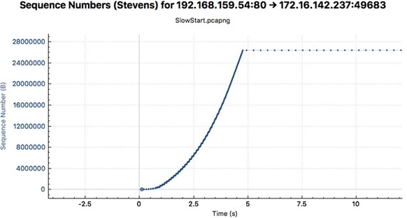 图1:TCP连接中的序列号(Stevens)随时间变化的情况