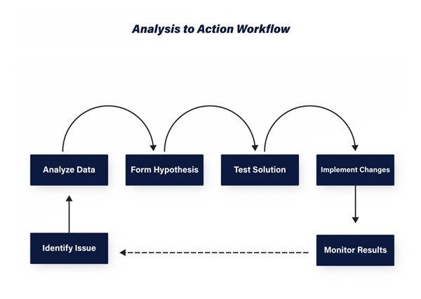 重要的是要记住,有效的分析往往是反复进行的。最初的发现可能会引发新的问题,要求分析人员重新审视 OIDA 的早期阶段。 关键是要保持好奇心,有条不紊,并对意想不到的发现持开放态度。分析过程中的每一次迭代都会带来新的见解,完善理解,并带来更有效的解决方案。