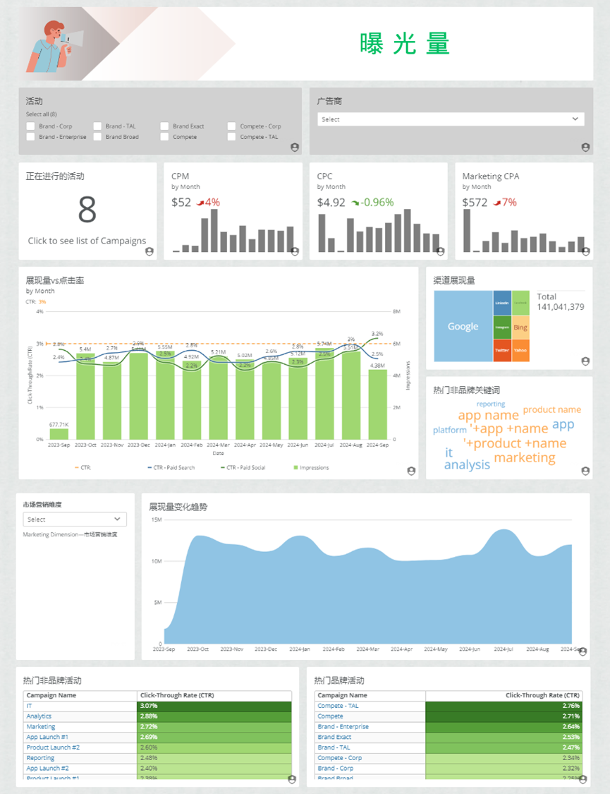 在BI商业智能技术的赋能下,广告媒体行业正逐步摆脱传统数据处理的束缚,迈向更加高效、智能的发展道路。Domo作为艾体宝公司的明星产品,凭借其卓越的数据处理与可视化能力,在广告媒体行业取得了显著的应用成果。