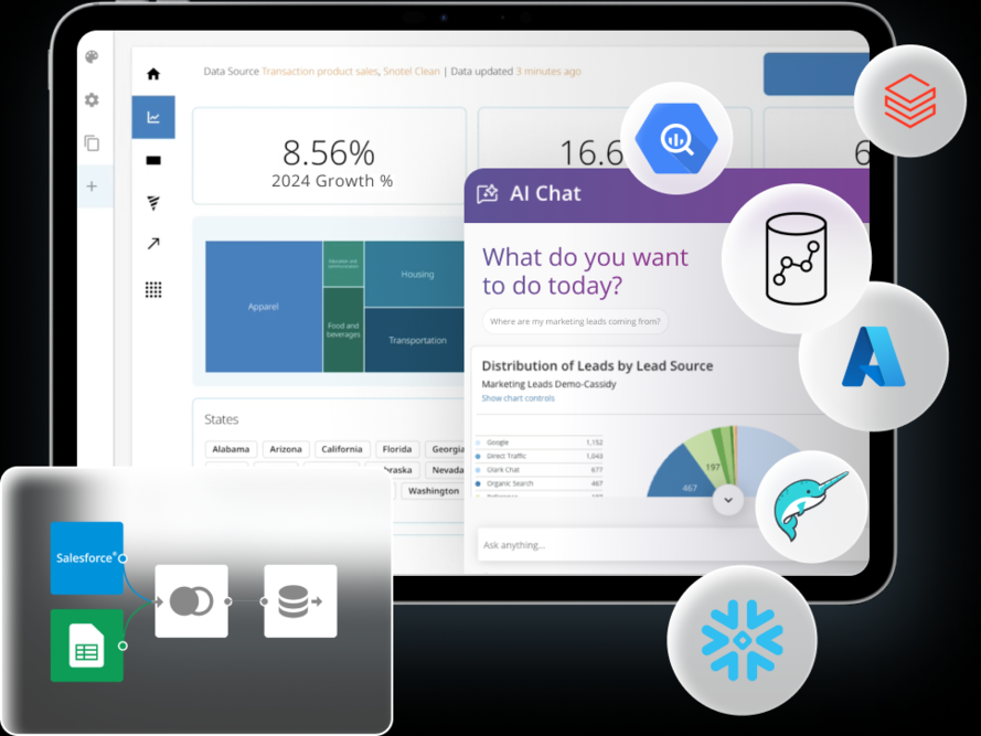 DOMO 是一个面向市场营销/广告投放的综合数字化平台,集成了数据连接,存储,准备,可视化,团队协作、预测分析以及AI大模型等功能。它适用于各种角色的用户,从各个场景出发,只要您有数据,它就能帮助您充分挖掘数据价值。
