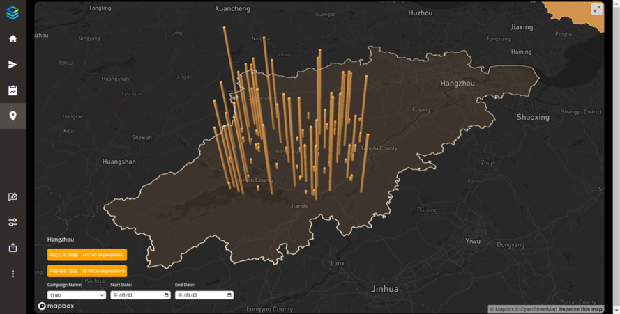 DOMO 支持通过地图视图展示广告的投放位置和覆盖范围,广告主可以在地图上实时查看活动投放的位置和覆盖范围。通过地理位置数据的可视化,广告主可以更好地了解哪些地点的广告效果最佳,从而优化未来的投放策略。