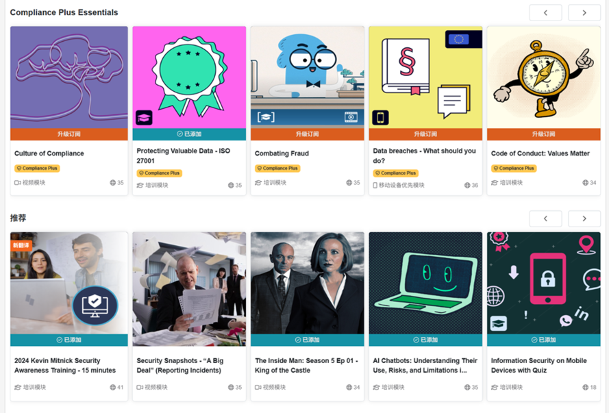 l 提供世界上最大的安全意识培训内容库;包括交互式模块、视频、游戏、海报和新闻通讯。