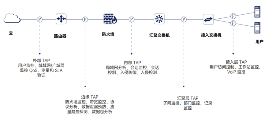 TAP 是战略性地放置在网络基础设施关键位置的硬件设备,如路由器、交换机或防火墙,在这些位置需要访问数据以进行监控或故障排除。在虚拟环境中,可以在虚拟化服务器上安装虚拟 TAP 或 vTAP,提供对东西向流量的全面访问和可视性。
