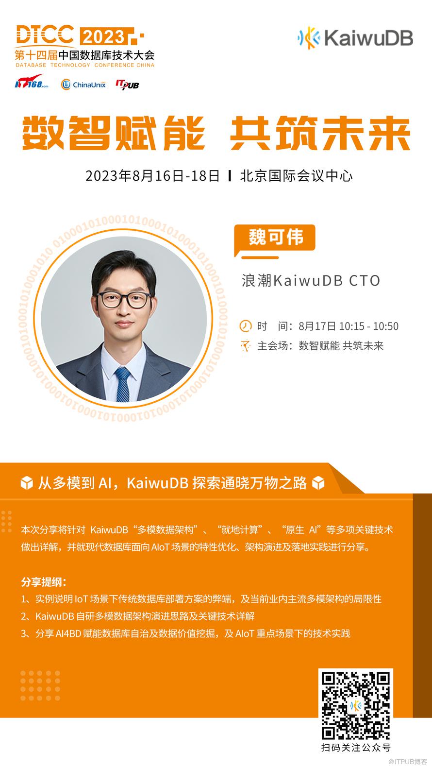 8 月 17 日10:15-10:50, 《从多模到 AI,KaiwuDB 探索通晓万物之路》 主题分享,我将就上述问题围绕“多模+AI”分享 KaiwuDB 在时代潮流下的探索,期待大家的到来!