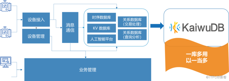 KaiwuDB 多模架构,能够有效地解决传统工厂“专库专用”“高成本”“运维难”等一系列问题,实现 “一库多用“ 。 以一套 KaiwuDB 数据库代替包括时序、OLAP、OLTP 等在内的多套专库 ,既能保障数据一致性、传输转换等关键性能不受影响,还能大大降低开发、运维及管理成本,助力广大企业通过多模架构轻松应对工业互联网场景下的业务弊端,“对症下药”。