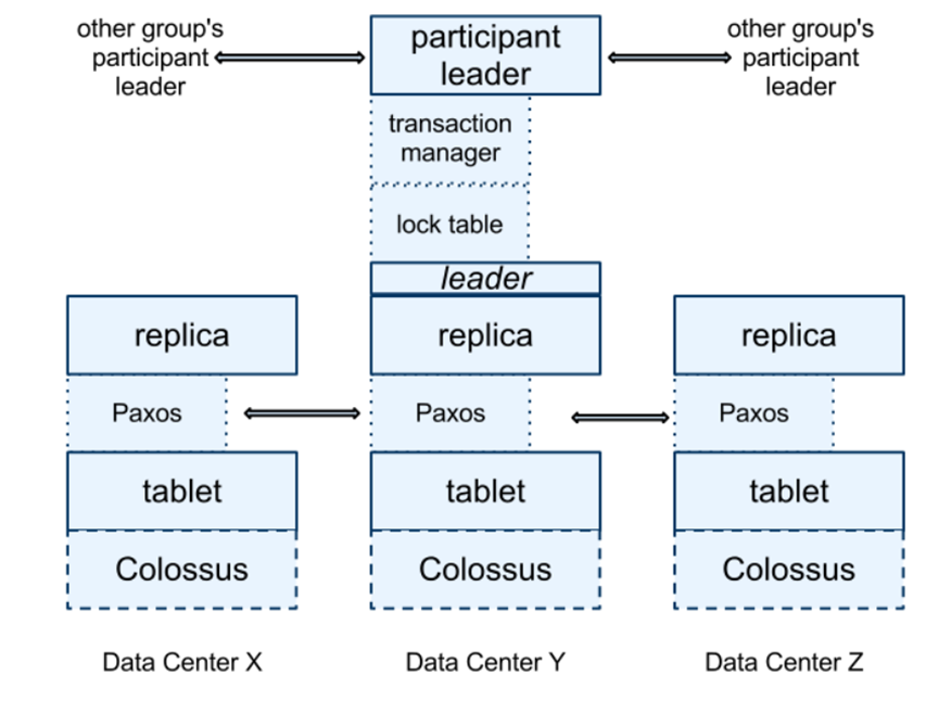 paxos 和两阶段提交(2PC)协议。Spanner 会在参与事务的