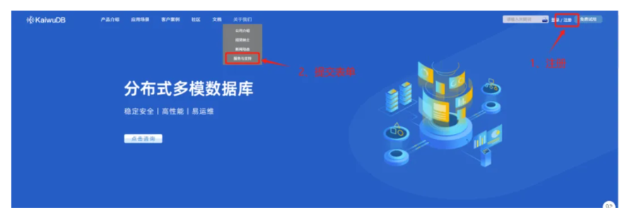 St ep 2、填写官网服务与支持表单,详细需求请备注: 演示环境免费用
