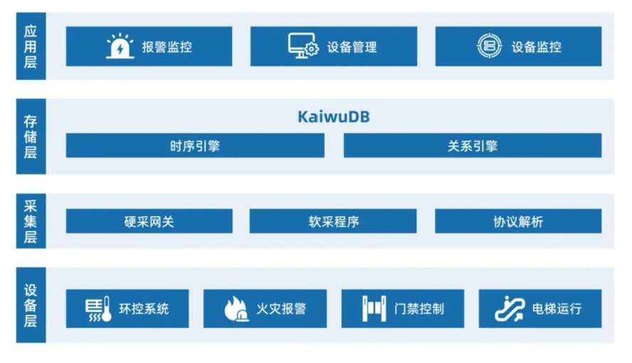 针对上述场景的特殊需求,KaiwuDB 打造了一套地铁物联网监控系统解决方案——通过其