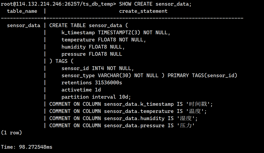 3.查看sensor_data的建表语句