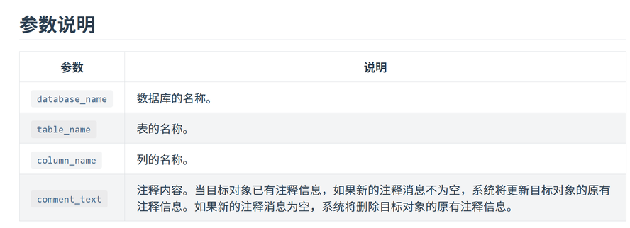 COMMENT ON [DATABASE  | TABLE  | COLUMN  ] IS ;
