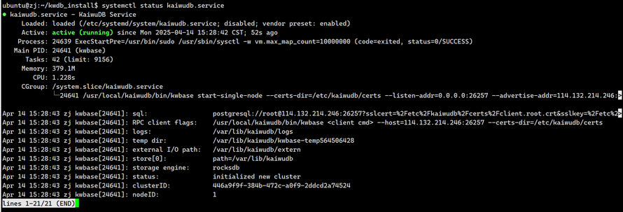 systemctl status kaiwudb.service