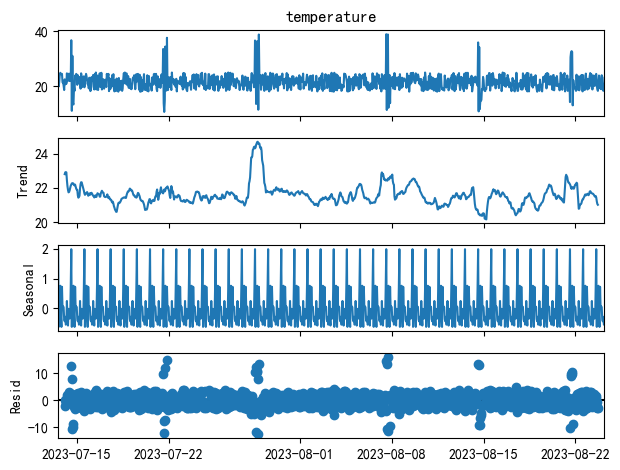 result = seasonal_decompose(df[ "temperature"], model= 'additive', period= 24)