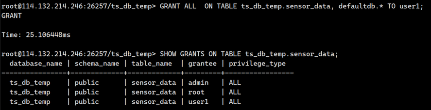 用户具有 Admin 角色。默认情况下,root 用户具有 Admin 角色。创建成功后,用户拥有该数据库的全部权限。