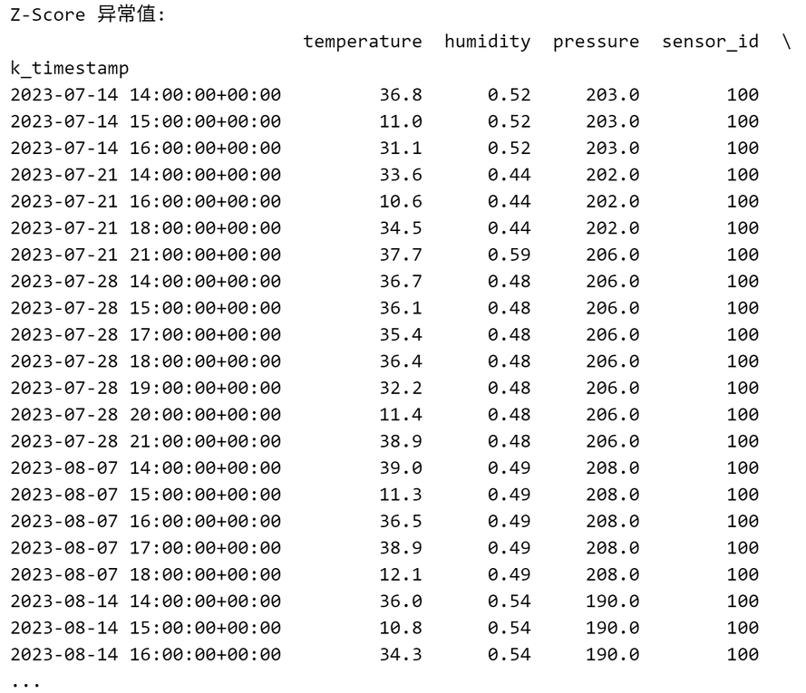 df = pd.DataFrame(rows, columns=[ "k_timestamp""temperature""humidity""pressure""sensor_id""sensor_type"])