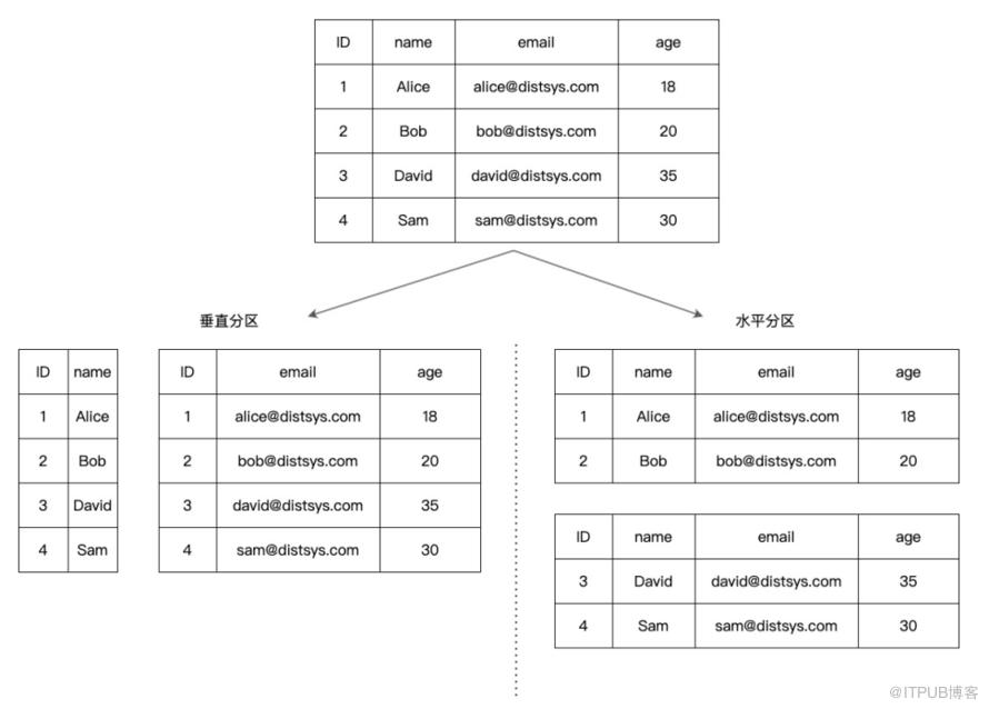 分区分为垂直分区(Vertical Partitioning)和水平分区(Horizontal Partitioning),这两种分区方式普遍认为起源于关系型数据库,在设计数据库架构时十分常见。