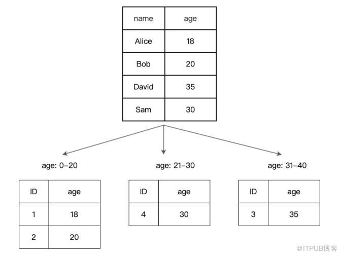 图A中的数据可以按年龄进行范围分区,将数据划分成如图2所示的分区。