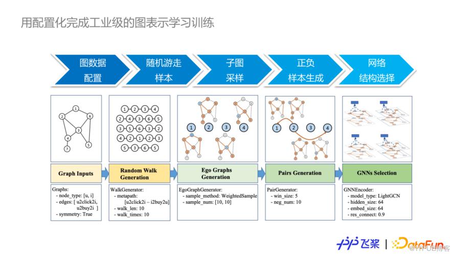 2021年,在我们 PGL 内部,我们提供了一套叫 Graph4Rec 的一个工具,可以通过五项的配置,就是配置好图数据,配置图的随机游走样本,采样的算法,正负样本采样生成的方法,以及网络选择,就能自动生成一套表示学习的训练,得到每个节点高质量的 embedding。但是之前我们这套方法是基于分布式的 CPU 去训练的。