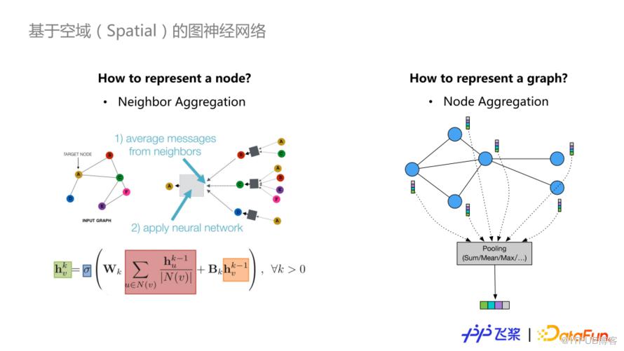 在基于空域的图神经网络里面,我们通常是关注两个点,一个是我们怎么做邻居的聚合去得到中心点的表示;另一个是我们有一张大图了,怎么去通过节点的汇聚得到整个图结构的表达。