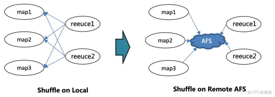如果reduce2运行中被抢占,需要从所有上游map重新拉取数据,而上游map已经被另一个任务占用,也需要重新排队计算因此造成时长增加,因此RSS技术的核心是把shuffle数据存远程文件系统,这样reduce被抢占的话直接从afs拉取map产出,map不需要重算,开启RSS的任务执行时间基本与标准型资源性能持平。
